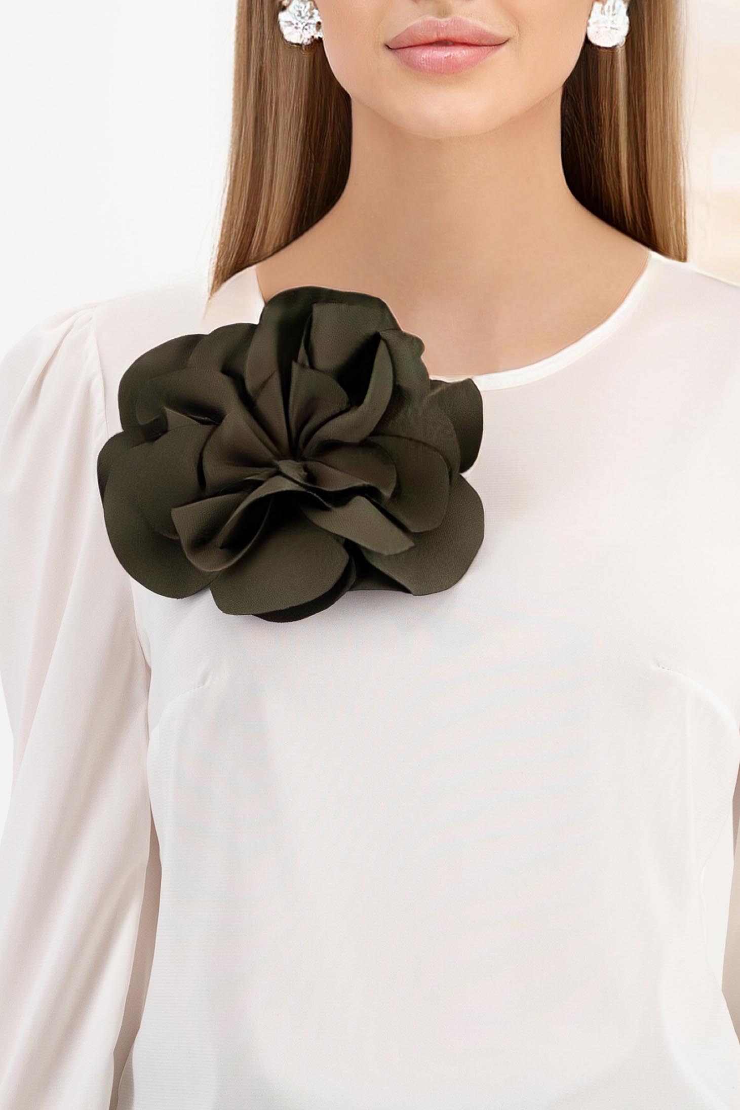 Brosa florala maxi din stofa elastica kaki - StarShinerS