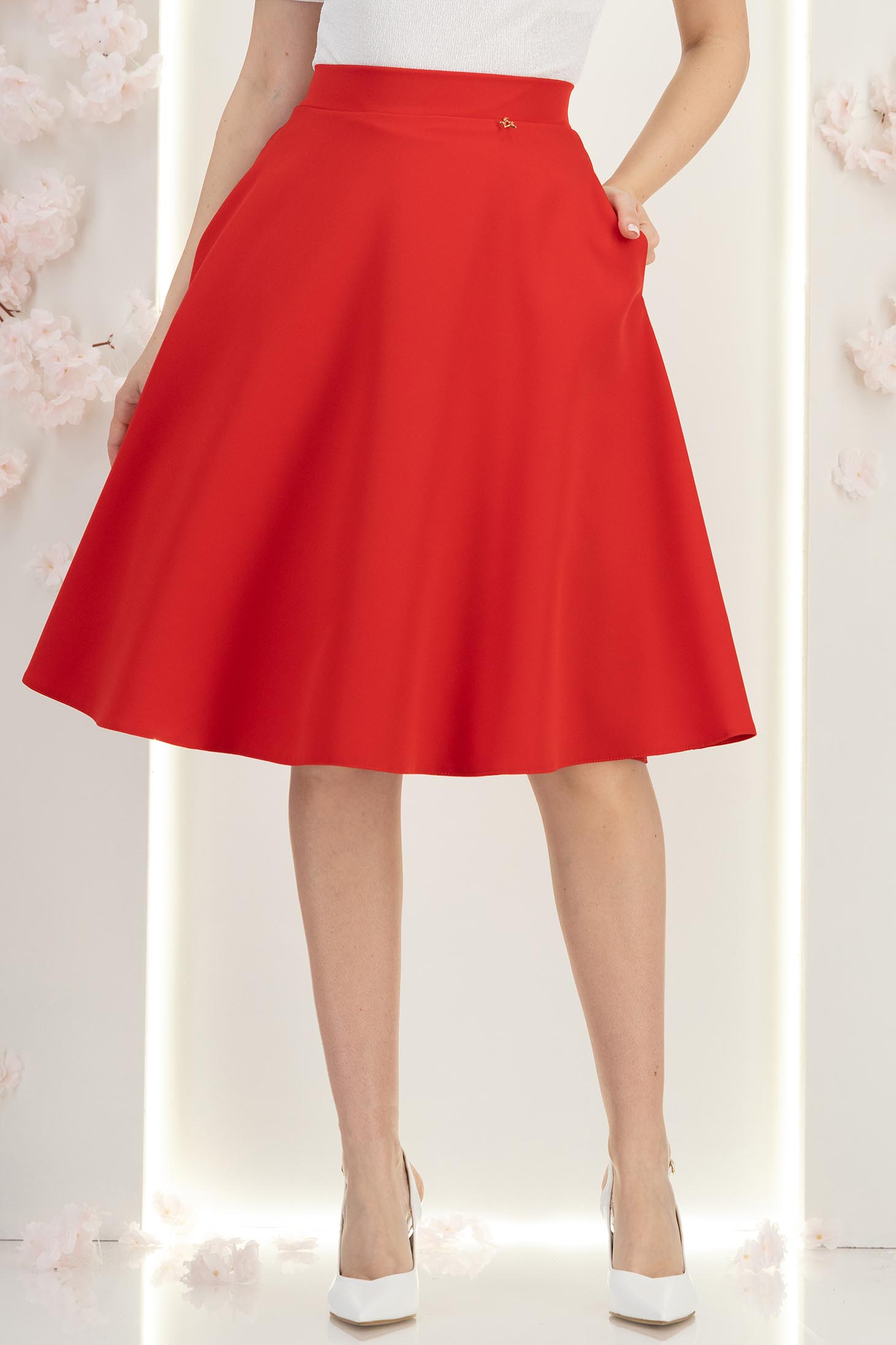 Fusta din stofa rosie midi in clos cu buzunare - StarShinerS