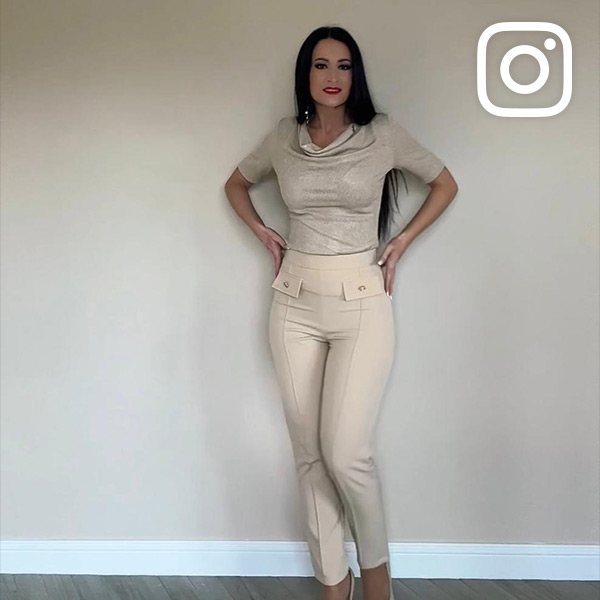 Pantalonii sunt realizați din stofă elastică, un material confortabil care oferă libertate de mișcare și o așezare elegantă pe corp. Talia înaltă evidențiază silueta și alungește vizual picioarele, oferind un plus de rafinament ținutei.