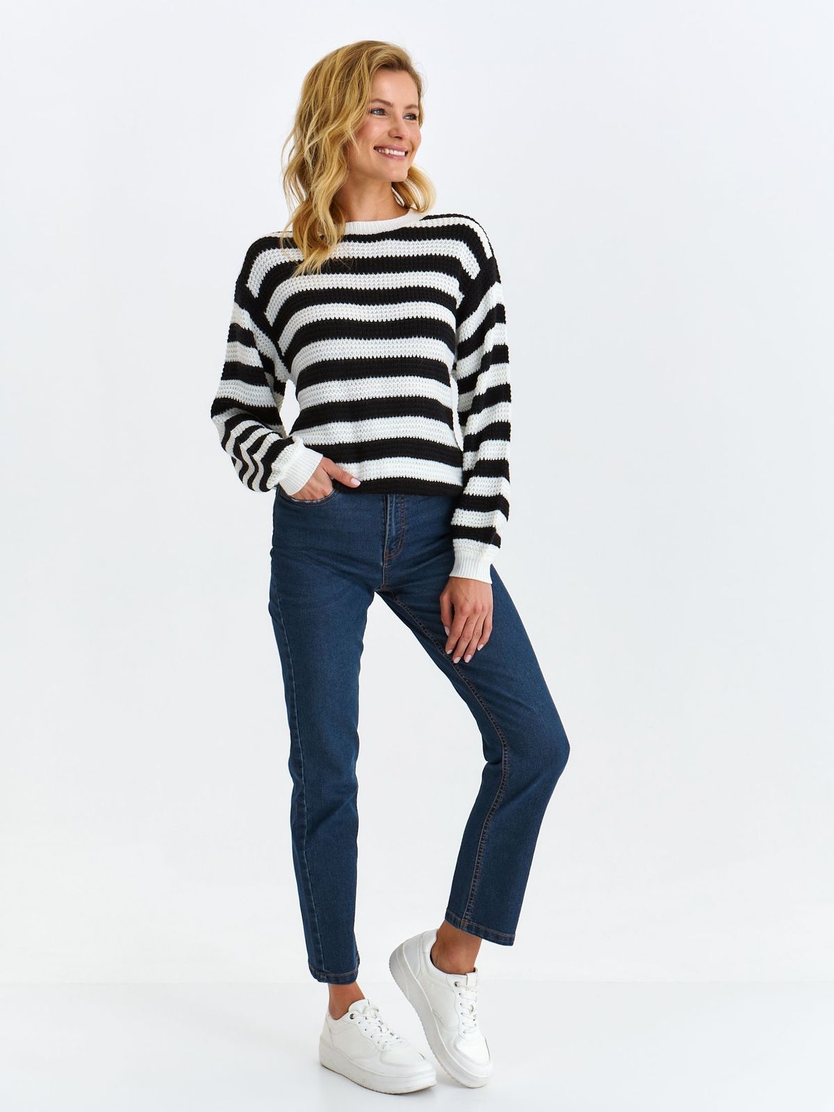 Pulover realizat din tricot imprimat cu dungi orizontale.Croiul este larg.