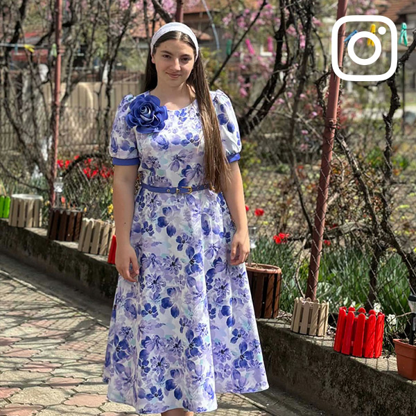 Decolteul rotund adaugă un aer clasic și rafinat, iar mânecile scurte, bufante, completează designul cu o notă romantică și modernă. Rochia nu dispune de căptușeală, fiind ușoară și plăcută la purtare.