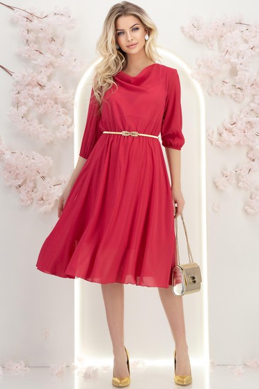 Rochie din voal fuchsia midi in clos cu elastic in talie si decolteu cazut - StarShinerS