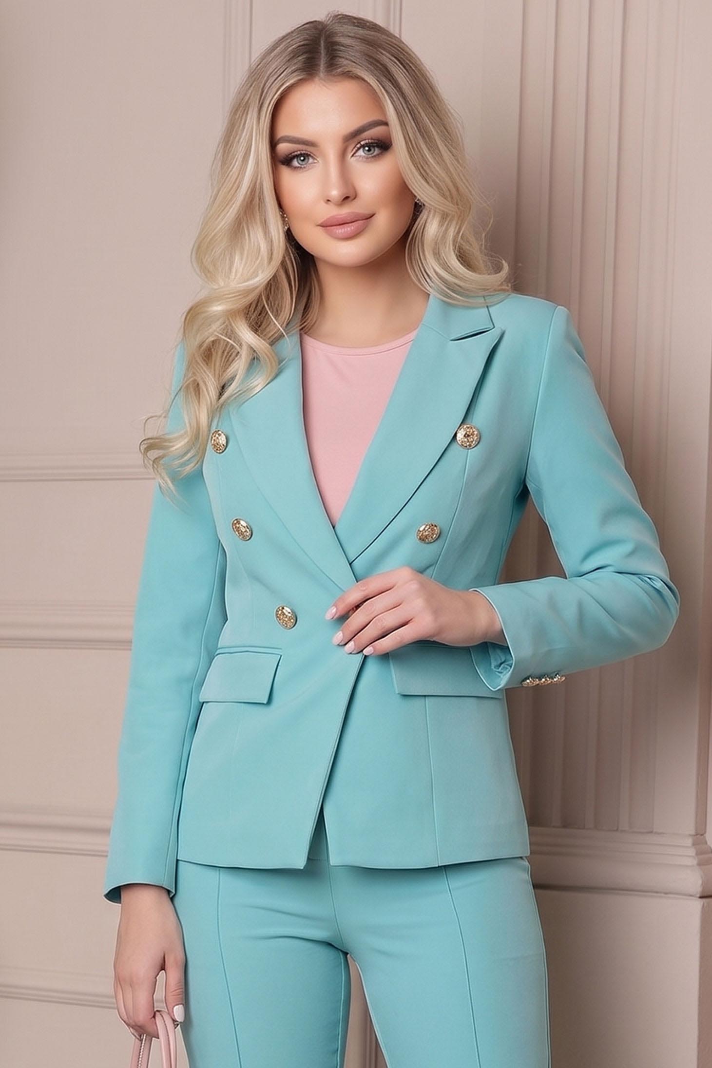 Sacou din stofa turcoaz cu un croi cambrat si nasturi decorativi aurii- StarShinerS